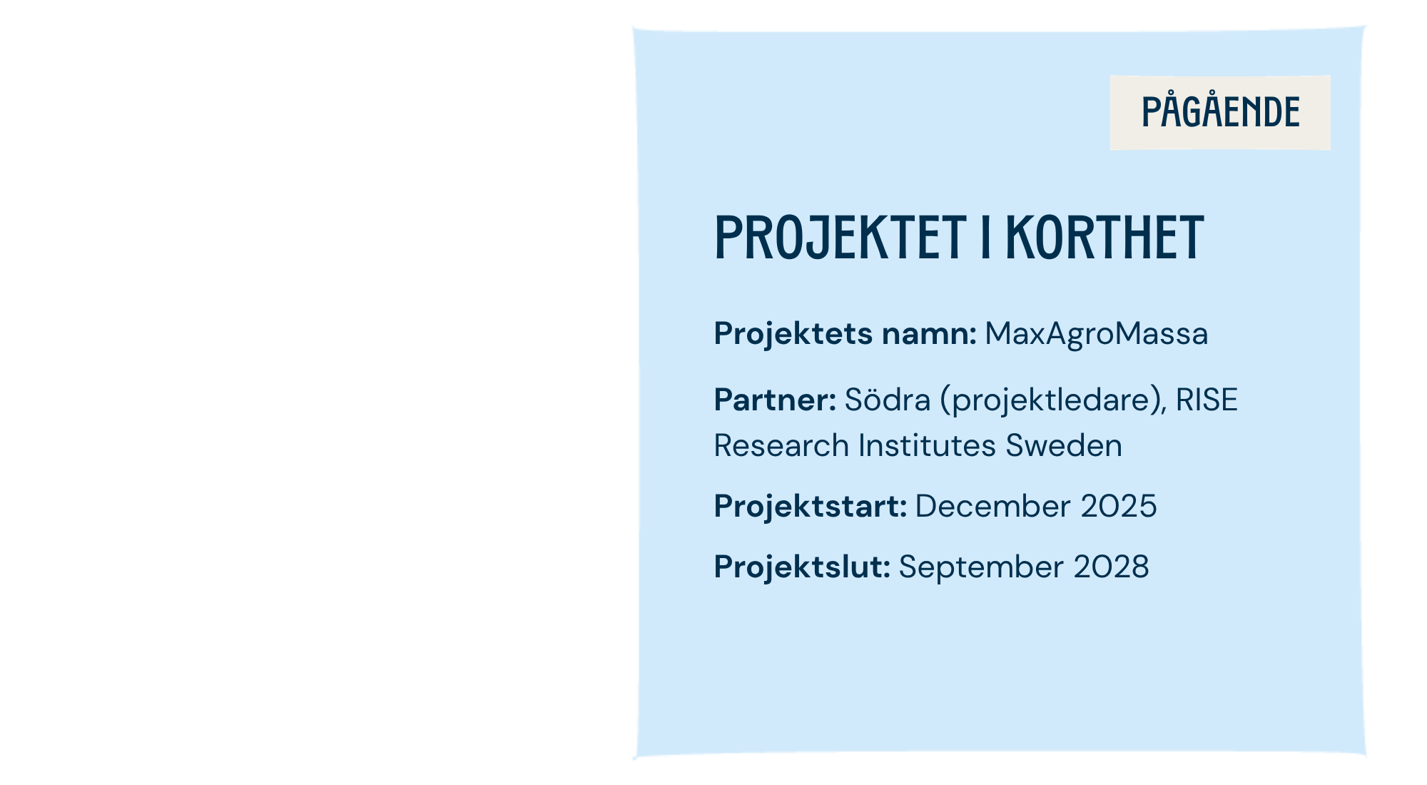 Projektet ingår i forsknings- och innovationsprogrammet Biosociety, som samlar aktörer från jordbruk, skog, livsmedel och industri för att stärka Sveriges cirkulära och biobaserad ekonomi.